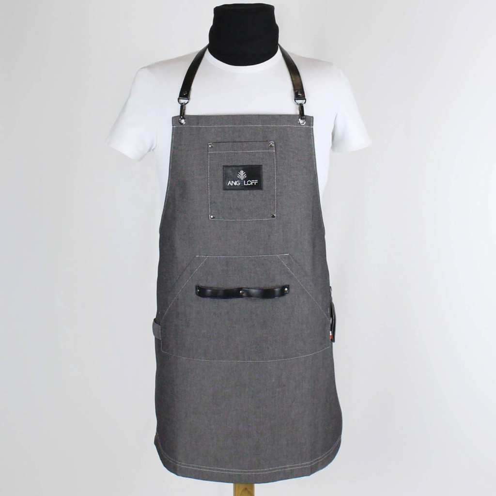 BBQ kötény konyhába vagy grillsütőbe, szürke farmer