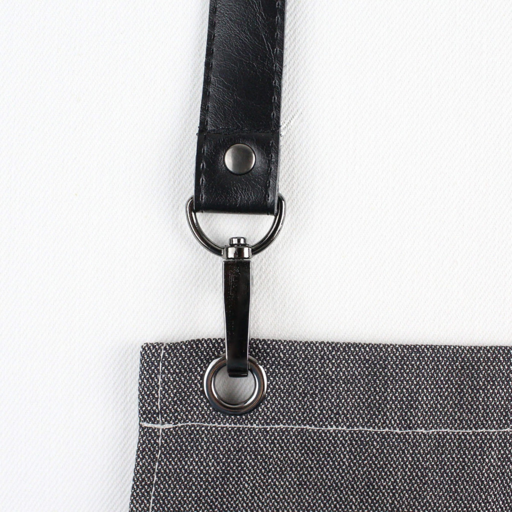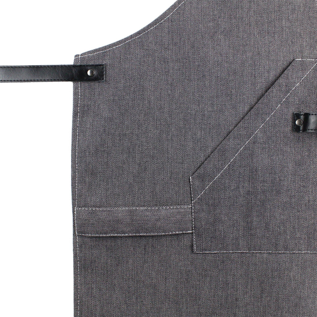 Stílusos és tartós, fekete farmerből és barna, ekológikus bőrből készült kötény. Tökéletes választás minden főzés- és grillezésrajongónak, legyen szó a konyháról vagy a szabadban lévő grillről.
