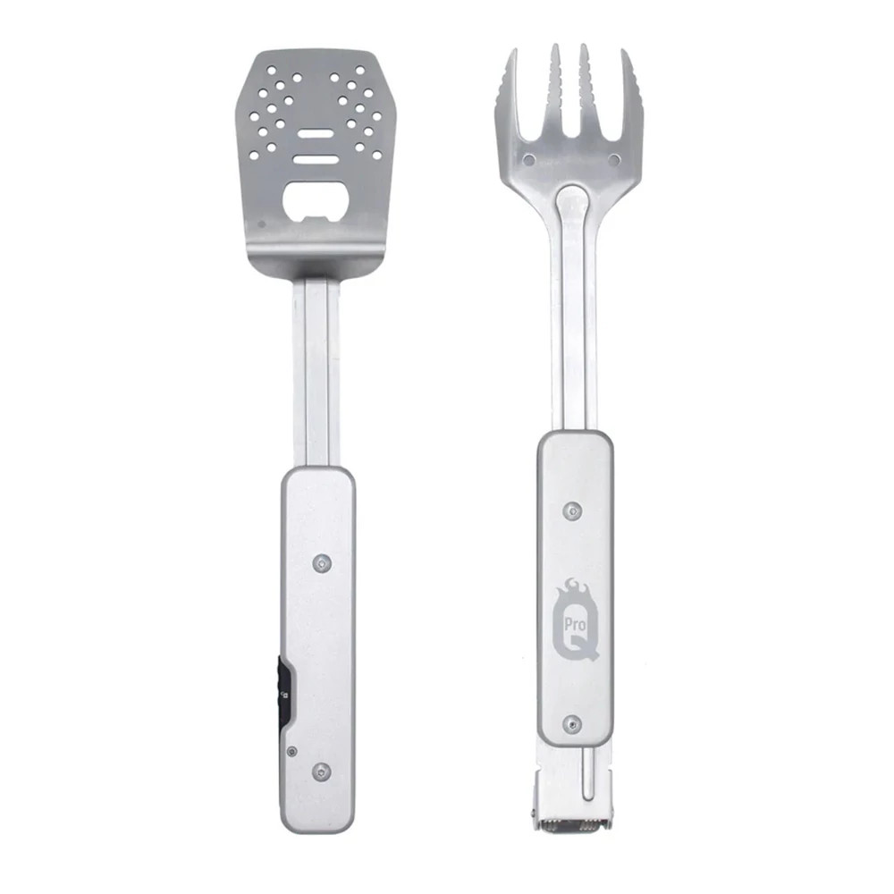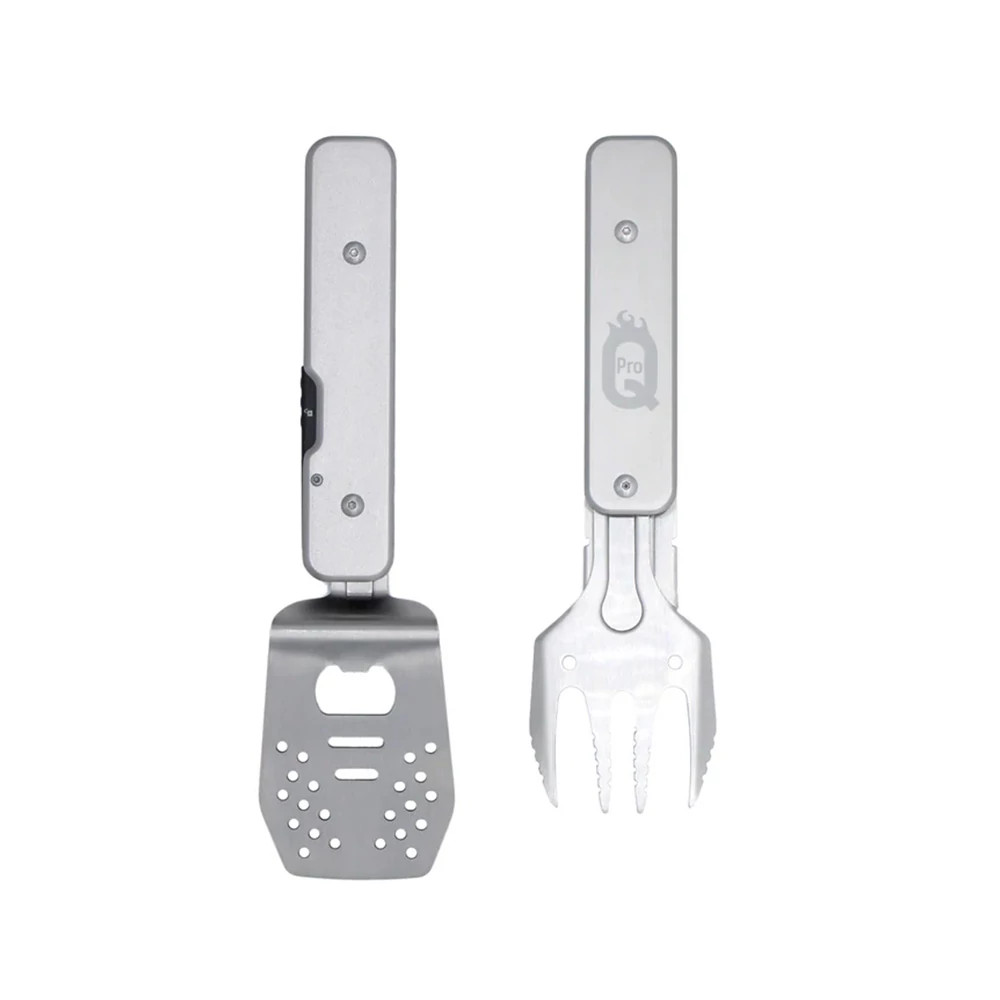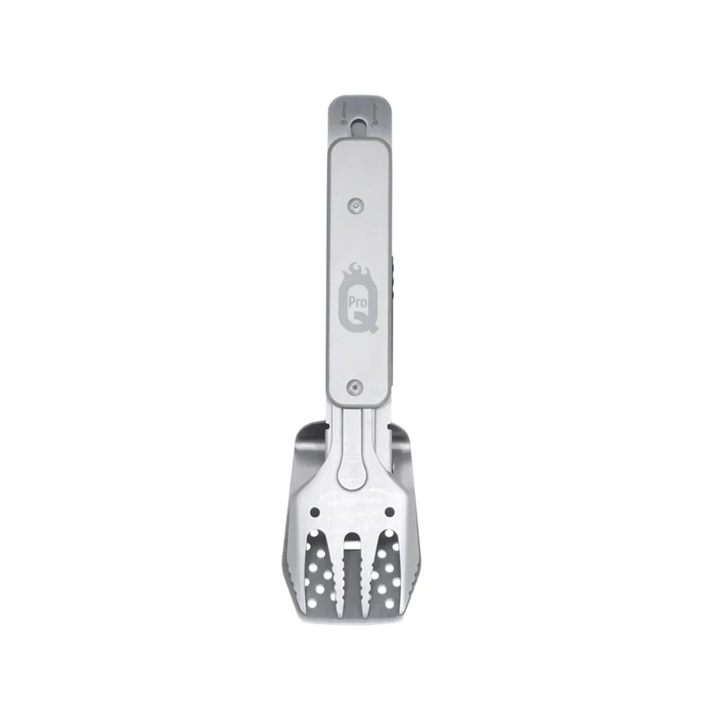 ProQ 4 az 1-ben univerzális BBQ-szerszám praktikus és sokoldalú kiegészítő, amely egyesíti a csipesz, spatula, villa és sörnyitó funkciókat. Tartós rozsdamentes „430” acélból készült, kompakt és könnyen szállítható, így ideális társ grillezéshez, piknikhez vagy kerti partikhoz.