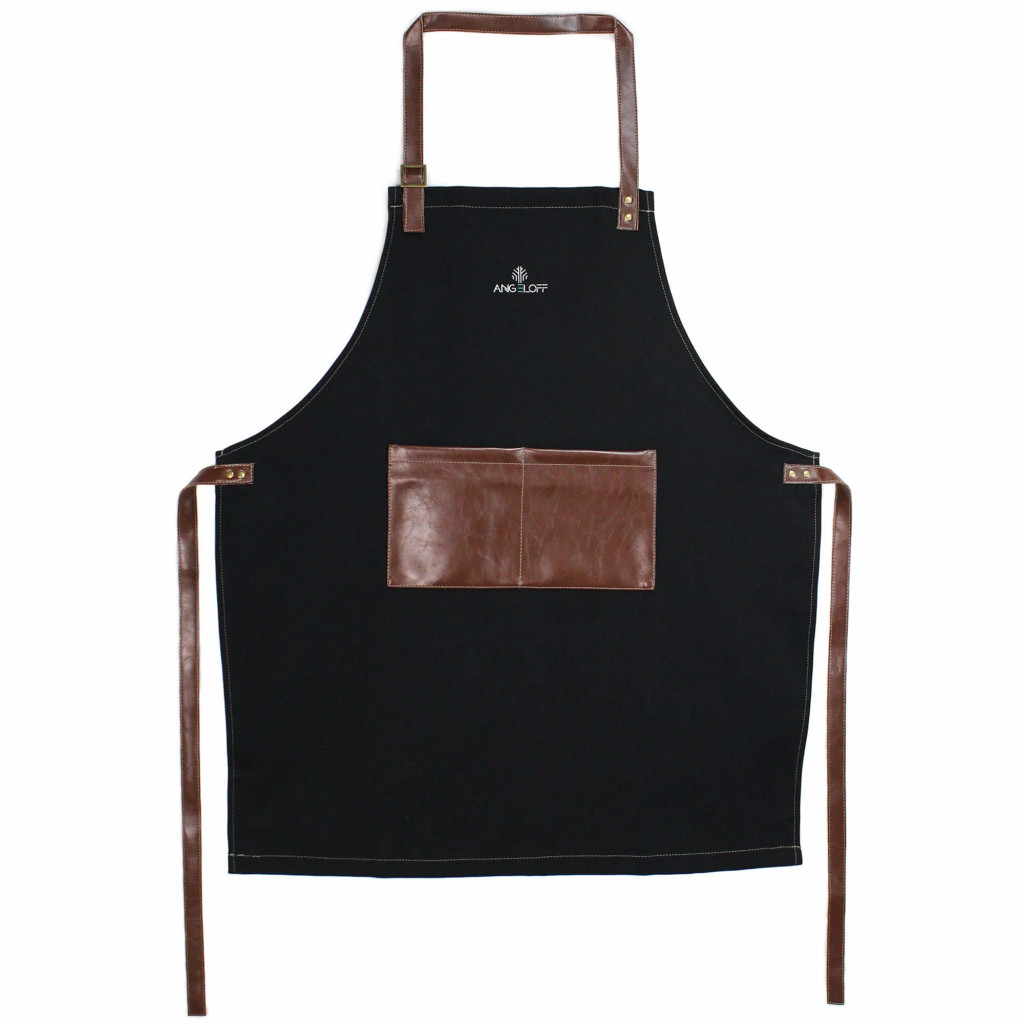 Fekete farmerből és barna, ekológikus bőrből készült, stílusos és tartós kötény. Tökéletes választás minden főzés- és grillezésrajongónak, legyen szó a konyháról vagy a szabadban lévő grillről.